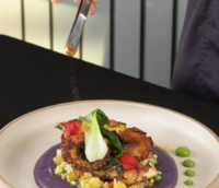 Comandado pelo Chef Gustavo Rinkevich o menu é todo elaborado com ingredientes locais e da região dos lagos, incluindo a famosa lula de Arraial do Cabo.